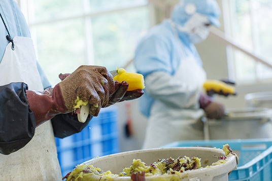 照沼の干し芋生産では、農薬や化学肥料を使わない有機栽培に取組んでおり、さつまいもが本来持つ自然の甘味、滑らかな食感、干し芋にした時の黄金色に輝く色味を引出しています。保存料などの食品添加物を一切使用しない干し芋作りでは、衛生管理が第一です。照沼では「HACCP(ハサップ)基準」に従い、すべての作業工程において、徹底した品質管理を行っています。