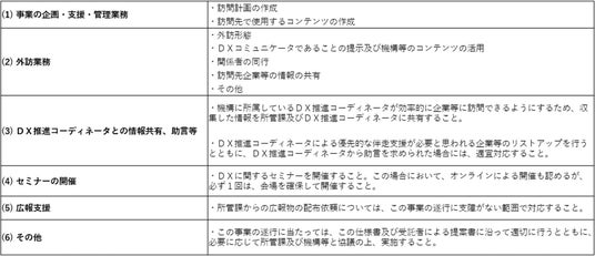 本事業は、企業への訪問とヒアリングを通じて情報提供や課題抽出を行い、DX推進の意識を高めることを目的としています。DXの重要性や導入方法の情報提供、課題解決の提案、成功事例の啓発活動を通じて、中小企業のDX推進を促し、地域全体の生産性向上と新ビジネス創出を目指します。