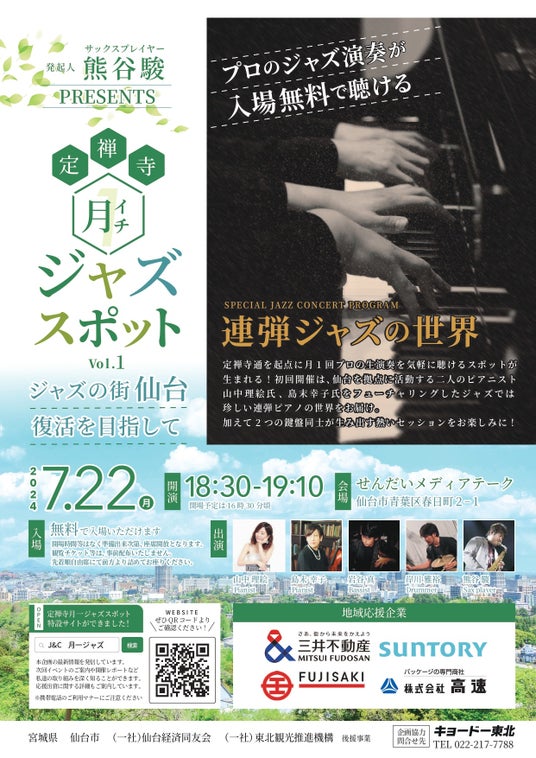 本開催は、ジャズの街 仙台復活を目指して【仙台の街を盛り上げたい!】と熱く応援してくださる企業の出資により開催される。