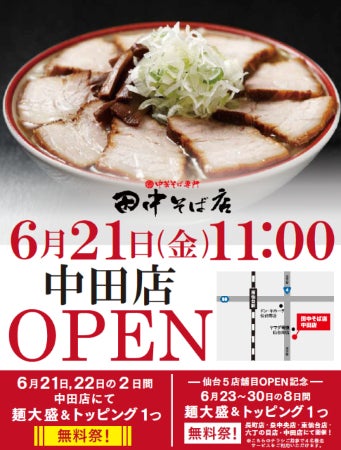 東仙台店、六丁の目店に続き仙台市内今年3店舗目(仙台市内5店舗目、全国23店舗目)がグランドオープン。仙台市内「田中そば店」5店舗合同でのイベントも開催