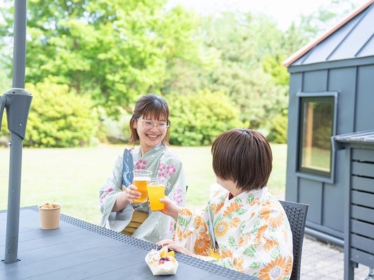 カフェレストランでは、「花笠ピザ」や山形名物「冷やしラーメン」や「肉そば」など全10種類のメニューに加え、山形のフルーツを使用した「スイーツ串」や1日数量限定「小玉すいかのかき氷」などの屋台メニューも提供。サウナガーデンでは、ミス花笠OGによる花笠を使用した熱波体験が楽しめる「花笠サウナ」を実施し、夏限定フレーバーのデトックスウォーターもご用意しております。その他、色浴衣の貸し出しも実施いたします。