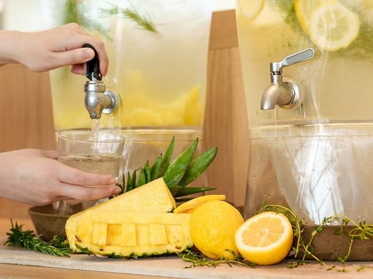 また、夏限定フレーバーのデトックスウォーター(レモン・タイム/パイナップル・ローズマリー)もご用意しております。大浴場には、サウナ後におすすめの山形発祥「冷やしシャンプー」もご用意しております。