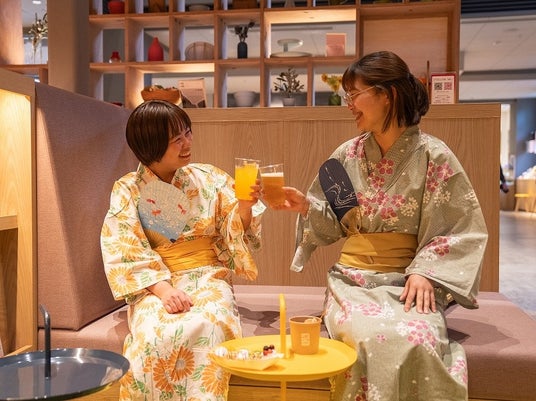 館内は、果樹王国山形のフルーツカラーのランタンや風車で装飾され、夏祭りをイメージさせる雰囲気に。お盆期間中の8月10日(土)~15日(木)は、大人も子どもも楽しめる縁日コーナーも設置、館内全体が活気ある雰囲気に彩られます。どこでくつろいでいても夏祭りの雰囲気を楽しむことができるイベントです。