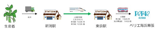 ○ 株式会社千葉ステーションビル(本社:千葉市中央区、代表取締役社長:杉村 晶生)は、新幹線による荷物輸送サービス 「はこビュン」を活用し、新潟の肥沃な大地が生んだ最高峰の枝豆のひとつである「くろさき茶豆」を、収穫したその日のうちに上越新幹線で輸送し、JR海浜幕張駅で販売します。