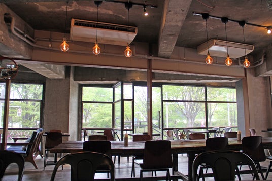 駒沢公園に面したガラス張りのおしゃれなカフェ。開放感溢れる大きな窓に、グリーンと打ちっ放しコンクリートのブルックリンスタイルがマッチしたおしゃれな雰囲気。ペットと一緒に入店もできます。