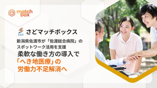 株式会社Matchbox Technologies(本社:新潟県新潟市中央区、代表取締役社長:佐藤 洋彰、以下当社)が提供した、自治体公式就業プラットフォーム「さどマッチボックス」を運営する新潟県佐渡市(市長:渡辺竜五)は、この度、佐渡市最大の病院である「新潟県厚生農業協同組合連合会 佐渡総合病院(所在地:新潟県佐渡市)」を「さどマッチボックスモデル企業」として選定し、地域課題の解決に向け自治体主導によるスポットワーク活用の人的、金銭的支援を開始しました。