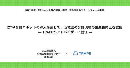 介護分野における生産性向上ガイドラインの作成など、2017年の黎明期から国のさまざまな施策づくりに深く関わり、ウェルビーイングに溢れた介護事業所を創出するために「生産性向上」「働きがい向上」「リーダー育成」の3つを一度に実現することができる生産性向上伴走支援サービス「Sociwell(ソシウェル)」、現場の課題を「見える化」し、分析・解釈まで行える委員会機能を備えた完全無料の業務改善サポートオンラインツール「生産性向上くん(R)︎」を展開している株式会社TRAPE(本社:大阪府大阪市、代表取締役社長:鎌田大啓)は、この度、令和7年度介護ロボット等の開発・実証・普及広報のブラットフォーム事業 茨城県窓口における業務アドバイザーに採択されましたのでお知らせいたします。