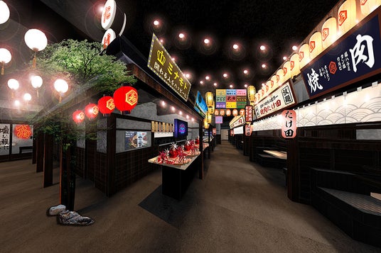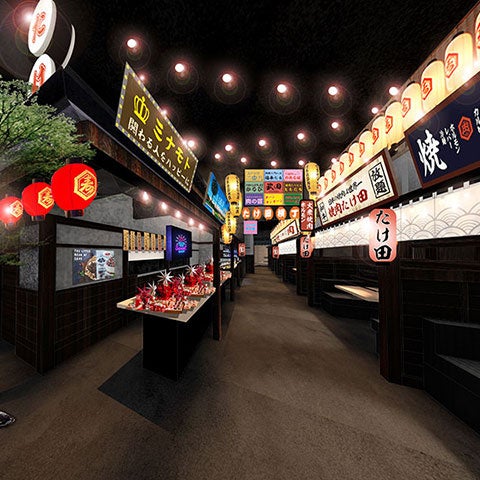 3.店内に入ると日本の横丁やお祭りのような賑わいのあるエリアから、格式高い和風格子の座敷席まで、様々な空間を楽しめます。