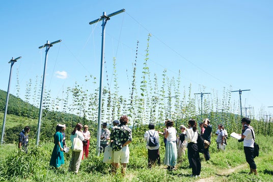 第2期(2023年度)講座の現地フィールドワークで訪れたブルワリーのホップ畑。 @鈴木穣蔵