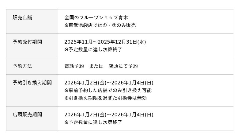 販売概要(アオキフルーツオンラインの場合)