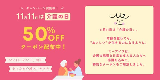 「介護の日」に合わせ、Me ICEをより多くの方に知っていただけるよう、楽天市場にて特別クーポンを配布しました(12/2にて配布終了)。