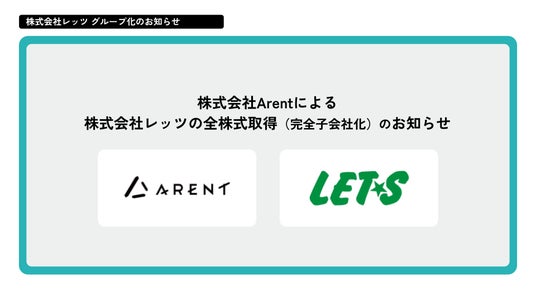 株式会社Arent(本社:東京都港区、代表取締役社長:鴨林広軌、以下「Arent」)は、建設業向け業務ソフト「レッツ原価管理Go2シリーズ」を展開する株式会社レッツ(本社:宮城県大崎市、代表取締役:山崎教雄)がArentグループに参画することになりましたのでお知らせいたします。