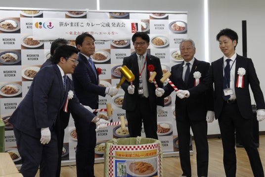 「世界の料理を『カンタン』に。」をコンセプトに掲げるレトルト食品専門店NISHIKIYA KITCHEN(ニシキヤキッチン)(株式会社にしき食品 本社:宮城県岩沼市、代表取締役:菊池洋)は、2024年6月3日(月)に、株式会社ささ圭(本社:宮城県名取市 代表取締役社長:佐々木圭亮)製造の笹かまぼこを使用したレトルトカレー「笹かまぼこカレー」を発売し、同日に岩沼市長 佐藤淳一様、名取市長 山田司郎様、日本郵便株式会社 宮城県南部地区連絡会 地区統括局長 柴田郵便局長 大沼芳則様、他関係者をお招きし、完成発表会を開催しました。試食や鏡割りなどを行った本イベントのアフターレポートを紹介します。