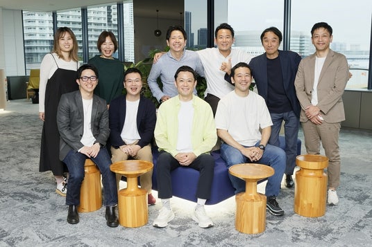 ビジネスマーケティング統括部グループ長の西山泰幸氏(前列右)と、同部署部長代理の鈴木研吾氏(前列右から2番目)、およびチームメンバー(撮影/山田愼二)