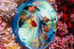 また、本展のメインアートワーク「金魚ディスコ-KINGYO DISCO-」ではアート集団・ミラーボーラーズとコラボし、ミラーボール×金魚でまさにディスコのような空間を演出しました。大迫力の全長3メートルを超える大型水槽も見どころです。