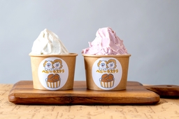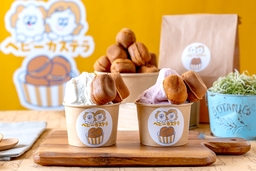 フレーバーは3種類、バニラミルク・国産いちごミルク・ホワイトコーヒーからお選びいただけます。ベビーカステラをトッピングした「ベビーカステラ&ジェラート」のセットがおすすめ。焼きたてのベビーカステラと、ひんやり・なめらかなジェラートのマッチングをお楽しみください。