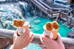 温泉はもちろん、食の探訪も草津での旅の魅力のひとつ。とりわけ湯畑周辺は、お土産ショップや草津ならではのグルメが楽しめる飲食店が軒を連ね、歩きながら手軽に楽しめる軽食も数多く揃います。当ホテルでは、こうした湯畑周辺の食べ歩きにぴったり、かつ、新たなメニュー*2として、オリジナルのベビーカステラと、相性抜群のジェラート(3種)を販売。どなたにもお楽しみいただけるどこか懐かしさもある見た目、優しい味わい、ふわっと漂う甘い匂い。旅の記憶をスイートに彩る“湯畑の新名物”をぜひご賞味ください。
