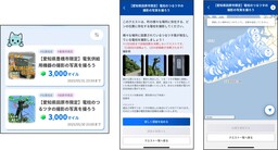 地域住民に当社が提供するポイ活アプリ「ジオクエ」を用いて、愛知県内の一部地域の電線等の電力設備の写真を投稿してもらい、保守点検に活用します。クエストの参加者には、調査協力のお礼としてポイントを付与します。貯まったポイントは現金や、各種ポイントに交換できます。