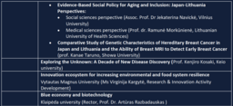 本フォーラムは、最先端の研究とイノベーションにおける両国の戦略的協力を深化させ、最先端の研究成果を実社会に還元することを目的としたハイレベルな国際会議です。リトアニアは、レーザー技術、バイオテクノロジー、生物医学分野において著しい発展を遂げており、日本は量子物理学、ナノテクノロジー、再生医療などの分野で世界をリードしています。本フォーラムは、両国の強みを活かした共同研究の可能性を広げるとともに、医療革新、持続可能な開発、先端製造といった地球規模の課題に対して、科学技術による解決策を模索する場となります。