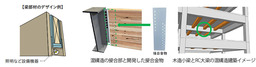木造とRC造の接合部分にカナイグループと共同開発した「混構造用接合金物」※3を採用。木造の小梁とRC造の大梁や柱を接合する金物を規格化。一般的な木造建築の特注品と比較しコスト削減と設計作業の効率化が可能です。