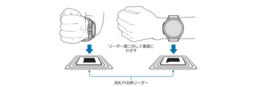 頂部(一般の時計で12時の位置)を向け、時計面を垂直に立ててかざしてください。
