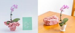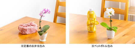 胡蝶蘭には「豪華・高級・大きい」という従来のイメージがあり、贈り物としては華やかさがある一方で、「飾る場所を選ぶ」「お手入れが難しいという印象を持たれやすい」といった声も聞かれます。そこで佐川ヒューモニーは、サイズ感と育てやすさに着目。「インテリア胡蝶蘭 結び花」は、高さ約30cmのミニサイズで、リビングや玄関、デスクなど日常の空間に自然に馴染みます。水やりは週1回程度で手軽に育てられるため、どなたにも安心して贈ることができます。さらに胡蝶蘭を包むのは、伝統と遊び心を大切に受け継ぐ「かまわぬ」の風呂敷。贈る瞬間には華やかさを演出し、贈った後はお弁当包みやインテリアクロスとして繰り返し楽しめる実用性を備えています。