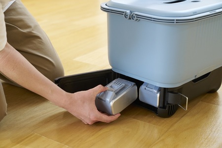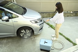 今回発売の「バッテリー対応 給水タンク式 高圧洗浄機」は、ELEINのバッテリー(別売)を使用することで、電源の確保が難しい場所でも手軽に使用することができるコードレス仕様の高圧洗浄機です。大容量18L※1の給水タンクに水をためておけば、水道が近くにない環境であっても問題なく使用可能で、アウトドアや災害時の清掃時にも頼りになる一台です。
