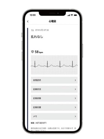・スマートフォンアプリ「OMRON connect(オムロンコネクト)」で心電図波形を解析。「心房細動の可能性」など6パターンの解析結果をお知らせ