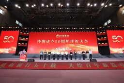 イベント中には、Shagangの50年の歴史を紹介する特別記念ビデオが上映されました。1975年に揚子江沿いの小さな圧延工場として資本金45万人民元で設立された同社は、現在では年間鉄鋼生産量4,000万トン以上、総資産3,000億人民元を超える世界有数の鉄鋼メーカーに成長しました。