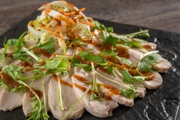「鶏肉と冬野菜の芝麻醤ソース和え」