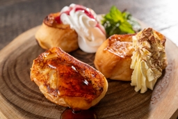 やさしい甘さのミルク仕立て。卵を使わずに仕上げた、ふんわり食感のフレンチトーストです。メイプルシロップやホイップクリームを添えてお好みの味わいに。