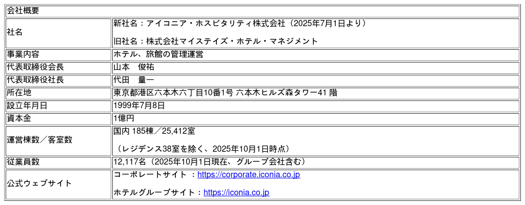 アイコニア・ホスピタリティ:https://iconia.co.jp/