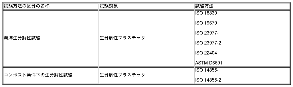 [ii] NITE認定センターが認定対象とする生分解性試験は以下表のとおり。