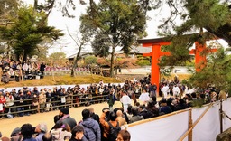 中でも、12月17日(水)に執り行われる「お渡り式」は、ご祭神である若宮様のお旅所(お祭りの間に遷られる場所)へ社参する、芸能集団や祭礼に加わる人々の行列を指します。巫女や稚児のほか、平安時代や江戸時代など様々な時代の風俗を奉仕者の衣装から見て楽しむことができます。