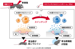 国立研究開発法人 産業技術総合研究所(以下「産総研」という)モレキュラーバイオシステム研究部門 戸井田 力 上級主任研究員と国立大学法人 徳島大学大学院医歯薬学研究部歯学域口腔科学部門口腔外科学分野 福田 直志 助教、徳島大学病院 歯科口腔外科 髙丸 菜都美 講師は、国立研究開発法人 国立循環器病研究センター研究所 姜 貞勲 室長らと共同で、リポソームによってマクロファージの表現型を操作することで、加齢で衰えた骨治癒機能を回復する技術を開発しました。