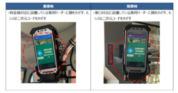 乗口付近に設置された専用リーダーに顔をかざす、またはスマートフォンに表示した二次元コードをかざすことでご利用いただけます。
