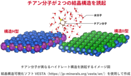 ・ 水分子が「チアン」を取り込むとき、2つの異なるハイドレート結晶構造が形成されることを発見。