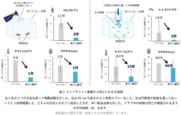 今回開発した技術は、これまで限定的にその役割を果たしてきたイソパラフィンの物理的殺虫剤としての殺虫効果と即効性を高めるものです。衛生害虫に対して噴霧試験をした結果、イソパラフィンにオゾンを混和したものの方がイソパラフィン単体よりも殺虫効果が高まり、窒息死するまでの時間も最大で7倍程度も早まることが分かりました。イソパラフィンとオゾンは共に環境負荷が低く、多くの化粧品や食品にも使われているものです。将来、蚊やゴキブリなど衛生害虫やカメムシのような農業害虫の低環境負荷型防除に応用できると考えられます。