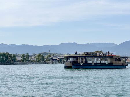 信仰の島である竹生島や多景島をめぐる観光船。彦根駅から無料シャトルバスも利用できます。