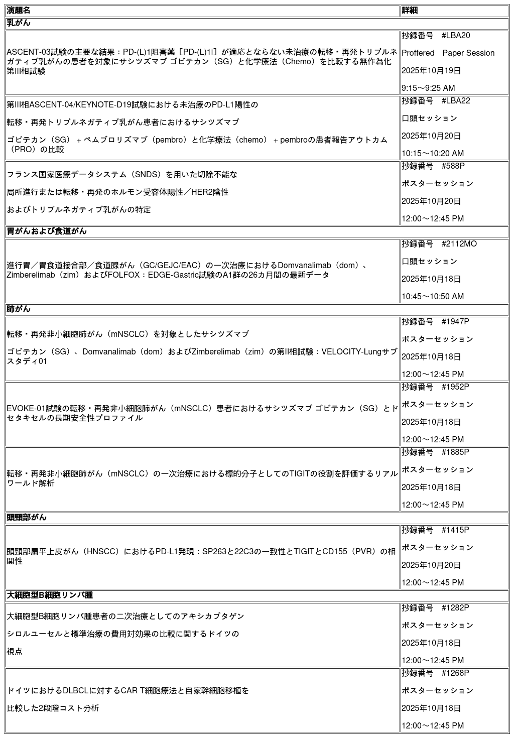 ESMO 2025で採択された抄録は以下のとおりです(いずれも中央ヨーロッパ夏時間)。
