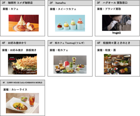 営業時間  :物販11:00~20:00/飲食11:00~23:00/サービス11:00~20:00