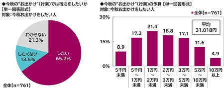 「今秋のお出かけでは宿泊をしたい」65%
