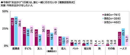 今秋一緒にお出かけしたい人 1位「配偶者」2位「子ども」3位「友人」