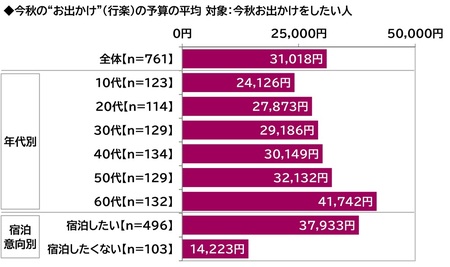今秋のお出かけ予算 1人1回あたりの平均は31,018円、