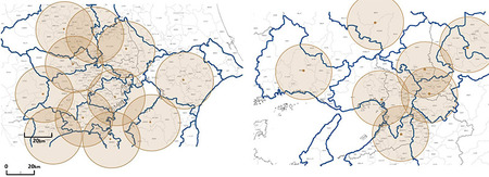 配送センター拠点一覧(左:首都圏一都三県 11か所 右:関西京阪神地区 5か所)