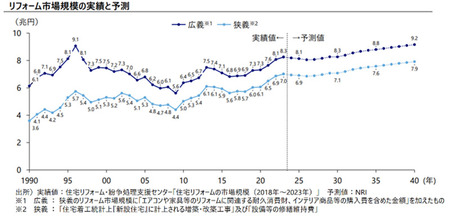 新設住宅着工戸数が減少傾向にある一方、リフォーム市場規模は2040年に9兆円の市場規模を見込むと推計されており、今後リフォーム市場の成長に伴い大きな事業機会があると期待します。