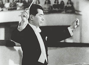 昭和19年、指揮をする古関(古関裕而記念館提供)